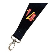 鮮やかなロゴが施されたこのランヤードは、IDカードや鍵をしっかりとホールドしつつ、